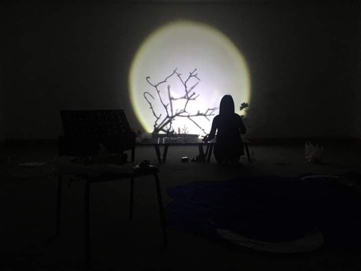 ก่อนจะหุ่นเงาเราก็ได้ทำละครหุ่นธรรมดามาก่อนค่ะ ช่วงที่อยู่กับมะขามป้อม ก็ใช้อุปกรณ์ธรรมดา ขวดน้ำ กระดาษ วัสดุรีไซเคิล มาเล่น มาทำให้มันมีชีวิต ตอนนั้นความรู้สึกเรามันตื่นเต้นนะ เราสามารถเอาอะไรก็ได้มาเล่น แล้วคนดูก็เชื่อว่ามันมีชีวิต เป็นความรู้สึกที่แปลกใหม่มาก ตอนเล่นมันก็สนุกด้วยค่ะ ทำละครหุ่นมาสักพัก ยิ่งทำมันก็ยิ่งสนุก ช่วงหนึ่งเราก็ได้มีโอกาสทำละครการศึกษา ก็มีการตั้งกลุ่มชื่อกระจิดริดขึ้นมา เพื่อทำงานกับครูในโรงเรียน ทีนี้มันก็มีกิจกรรมหนึ่งที่เราต้องทำร่วมกับเด็ก หุ่นเงามันก็เป็นกิจกรรมหนึ่งที่เราเลือกมาทำ ตอนนั้นก็ยังทำแบบง่าย ๆ อยู่ ตัดกระดาษเจาะรู แล้วก็เล่นหลังฉาก ปรากฎว่าตอนเล่นเรารู้สึกอินมาก ทีแรกก็ไม่เข้าใจว่าทำไม แต่พอทำ ๆ ไปเราก็เริ่มเข้าใจตัวเองว่า เราชอบอยู่ในความมืด มันเป็นที่ ๆ เรารู้สึกสบายใจ แล้วพอได้ใช้แสง ใช้เงามาเป็นองค์ประกอบตอนเล่น มันก็ยิ่งชัดว่าเราอินกว่าการเล่นหุ่นเฉย ๆ