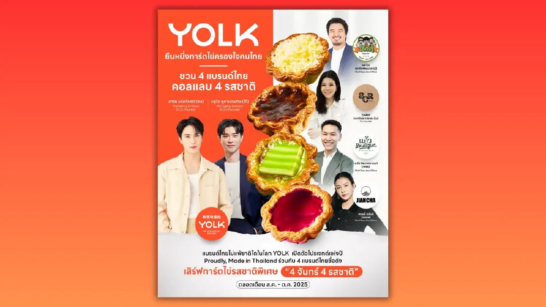 YOLK ฉลองยอดขายทะลุ 100 ล้าน เปิดตัวโปรเจกต์ “Proudly, Made in Thailand” จับมือ 4 แบรนด์ไทยชั้นนำ สร้างสรรค์ทาร์ตไข่รสชาติใหม่ พร้อมยกระดับแบรนด์ไทยสู่เวทีโลก