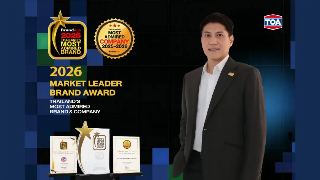TOA คว้า 3 รางวัลใหญ่ ย้ำแชมป์ Market Leader ตัวจริง 15 ปีซ้อน และรางวัลองค์กรต้นแบบที่มีความน่าเชื่อถือสูงสุด พร้อมเดินหน้ากลยุทธ์ ‘Total Solution’ เพื่อการเติบโตที่ยั่งยืน
